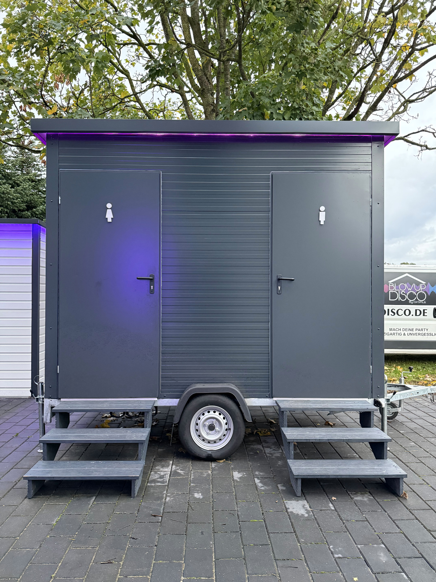 Unser DISCOKLO ist ein mobiler Toilettenwagen für Partys und Veranstaltungen – stylisch, sauber und mit echtem Discofeeling - ohne Kompromisse bei Stil und Sauberkeit.